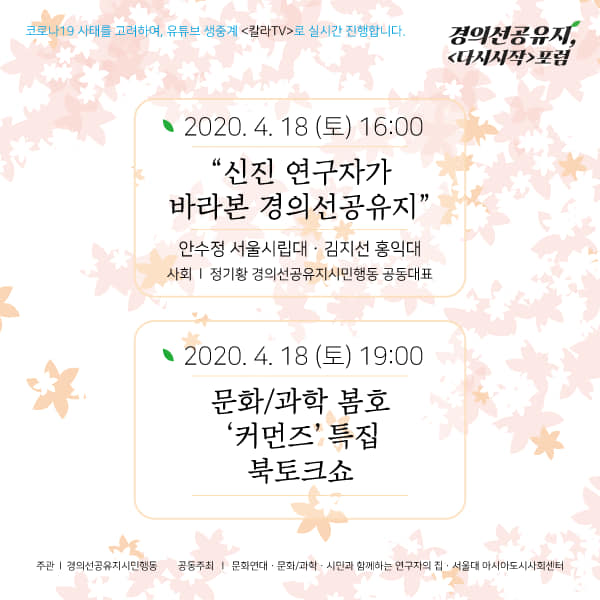 경의선공유지 <다시시작> 1차 포럼은 Youtube에서 다시 보실 수 있습니다.