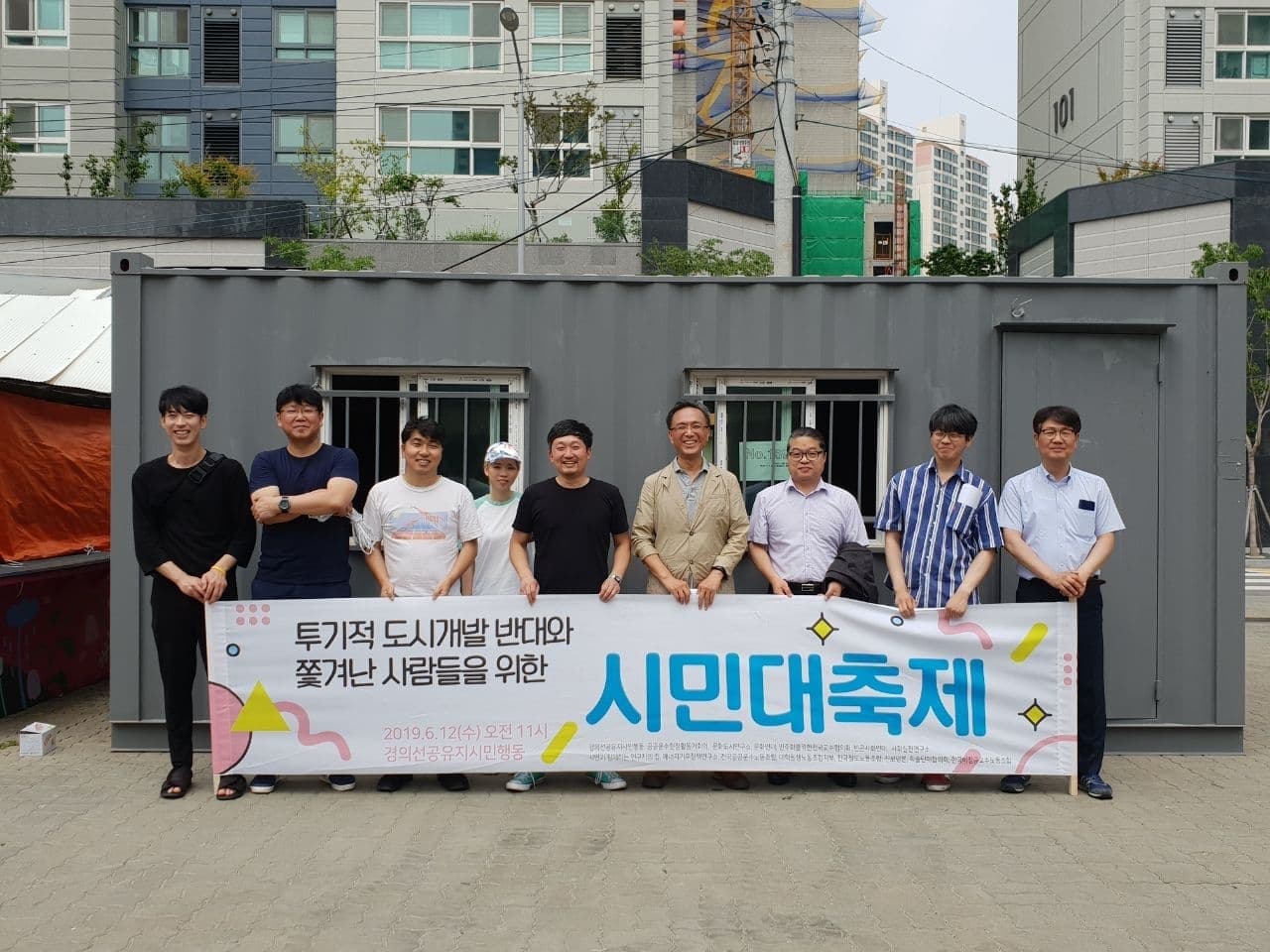 진행자 2017년 말 구상안이 발표된 이후 연집은 경의선공유지운동과의 결합을 모색했습니다. 구체적으로는 2018년 5월 경의선공유지추진위를 발족하고 같은 해 7월에는 경의선공유지에 컨테이너를 설치하는 계획도 수립했는데요, 연집에서 경의선공유지운동과의 결합을 모색한 이유가 무엇인지 궁금합니다. 아울러 경의선공유지에 컨테이너를 설치하는 계획을 수립했던 이유도 궁금합니다.