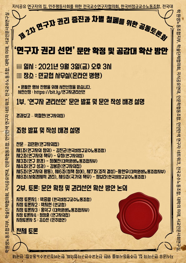 제 2차 연구자 권리 증진과 차별 철폐를 위한 공동토론회