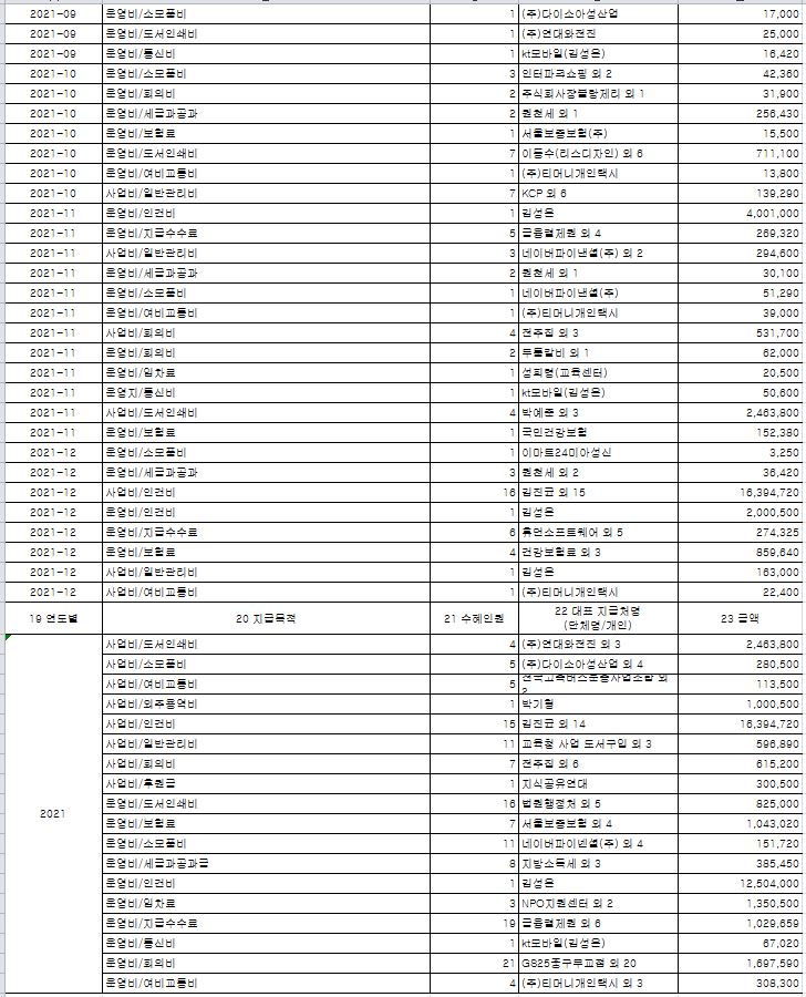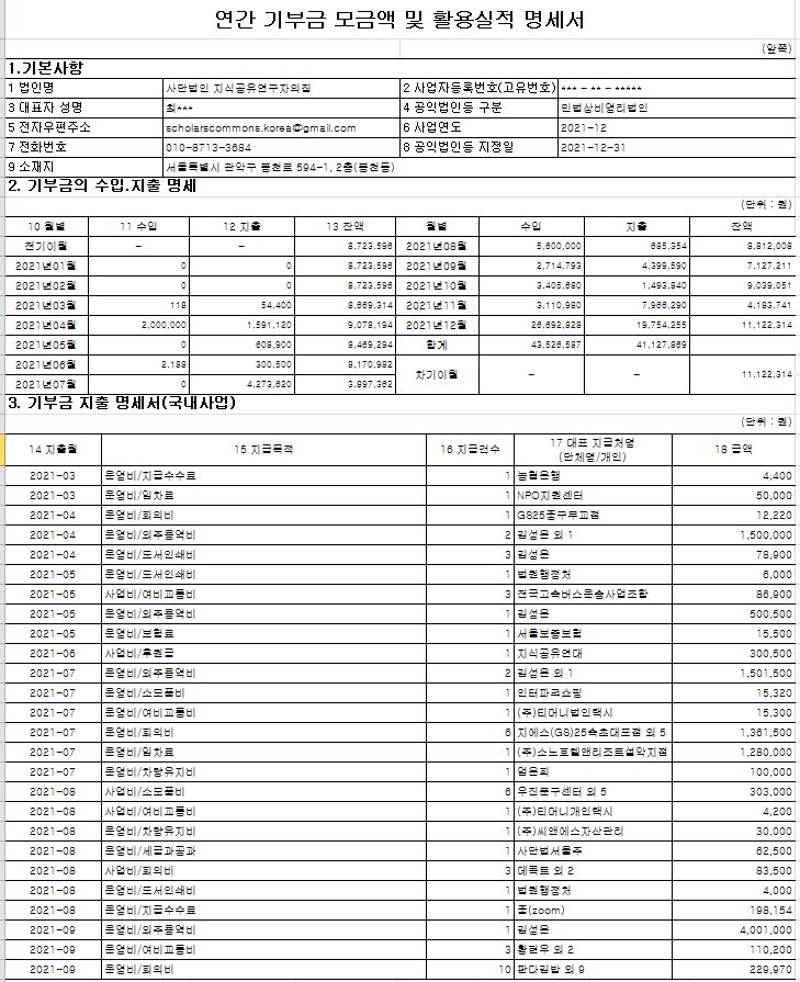2021 연간 기부금 모금액 및 활용실적 명세서