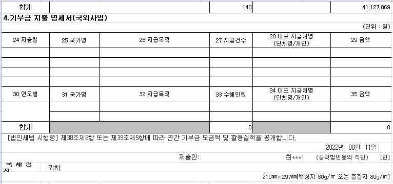 2022 연간 기부금 모금액 및 활용실적 명세서