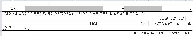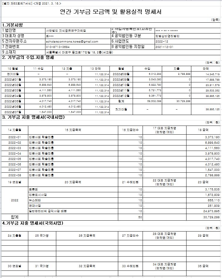 2022 연간 기부금 모금액 및 활용실적 명세서