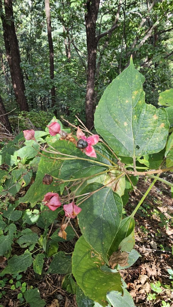 산행 중에 어김없이 꽃, 풀, 나무 등을 만난다. 이젠 네이버 사진찍기로 바로바로 그 이름을 파악한다. 그 전에 최갑수 선생님이 팥배나무 누리장나무 들을 알려주셨다. 봄에 팥배나무 열매가 초록의 보리수나무 열매처럼 작고 예뻤는데 지금 벌써 빨갛게 익었다. 최갑수 선생님이 우리나라에서는 소나무도 번호표를 붙여서 관리한다고 하셔서 반가움과 놀라움을 금치 못했다.