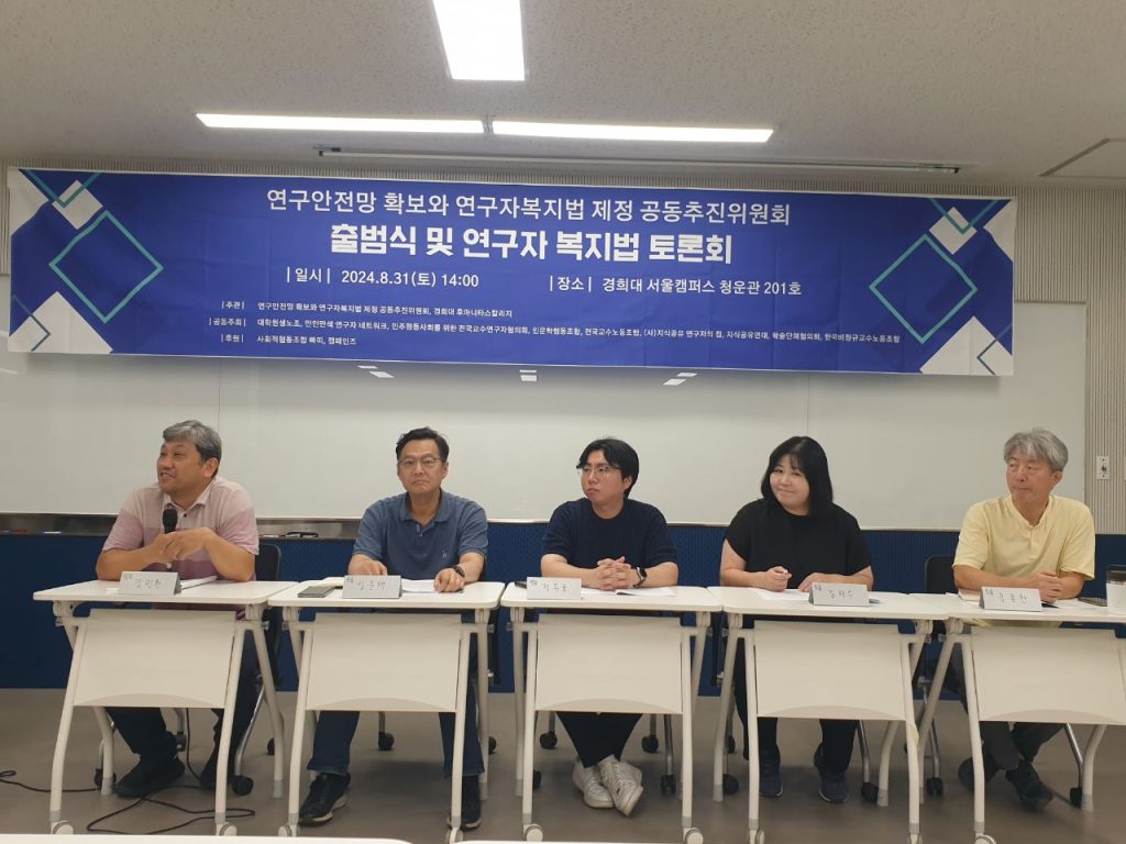 ‘왜 얘네들만 해줘야 돼?’, ‘왜 연구자들만 해줘야 돼?’. 어렵다고 우리한테 입법을 요구하는 굉장히 많은 사회의 다른 어려운 불안정 노동자들이 똑같이 요구를 하는데 ‘왜 얘들만 해줘야 돼?’라는 거에 대해서 우리가 국회의원을 설득 못한 측면도 있고 그거 잘 생각해 보시면 우리 스스로도 설득하기 어려웠던 지점들이 있습니다.
