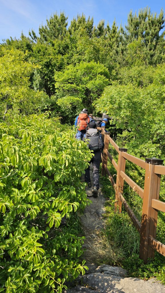 섬에서 부는 바람을 맞으며 맛있는 음식으로 원기를 회복한 후에 계속 걷기 시작했다. 송광사 절터를 지나 신선대로 가는 동안 섬의 숲길은 정말 아름다웠다. 아름다운 꽃들과 처음 보는 꽃들이 있었고, 처음 보는 나무들도 많았다.