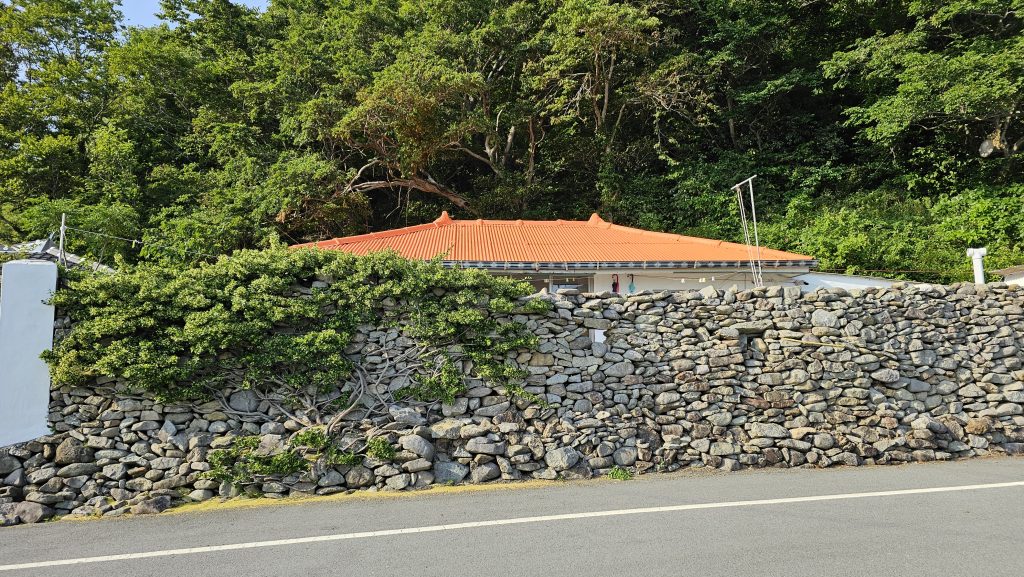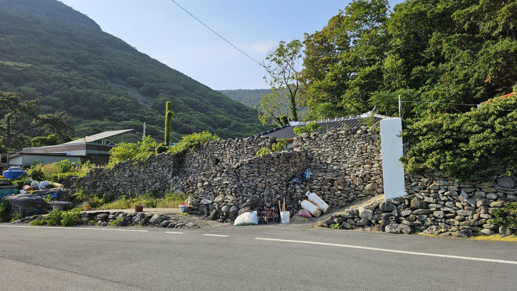 금오도 제1길에 도착 후 하산 길에는 제1길의 종착점인 두포(초포)에 도착했다. 두포 마을에는 바람이 많이 부는지 집 앞에 지붕까지 오는 돌담이 쌓여 있었다. 돌담을 파고들어서 한 나무가 자라는 모습도 있었다. 섬이라 바람이 많이 부나보다 했는데, 마을에 큰 나무와 넓은 마루가 있어 앉아서 막걸리 한 잔을 마셔보려고 하는 데도 정말 심한 바람이 불어왔다. 마루에 앉은 지 10분도 되지 않았는데, 어떤 한 등산객이 이 마을에 버스가 있냐고 물어온다. 우리는 “버스 안 타고 걸어갈 것입니다^^” 라고 호기 있게 대답했지만, 곧이어 도착한 버스에 6명이 몸을 후다닥 몸을 싣느라 정신이 없었다. 버스는 청룡 버스처럼 산을 가로질러서 달렸다. 길이 매우 가파른데도 버스는 잘 달렸다. 섬사람들은 다들 느긋하고 익숙하게 대응하시는 것 같았다.