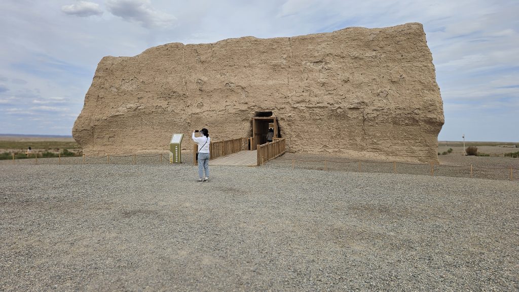 사진 11. 둔황시에 있는 만리장성 두 관문(옥문관, 양관)중의 하나인 옥문관: 둔황시의 서북쪽으로 98km 떨어진 곳으로 서역으로 통하는 북쪽의 관문