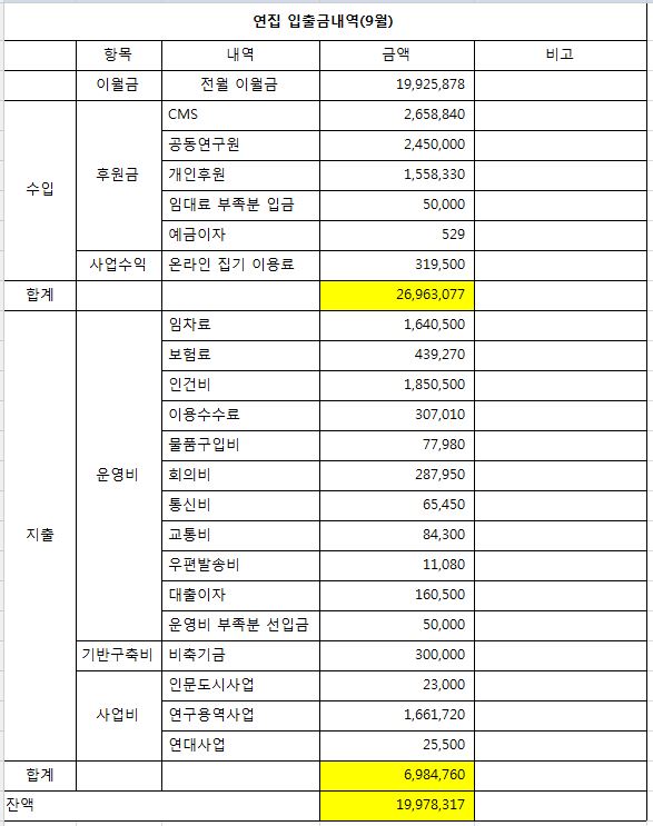 9월 정산보고